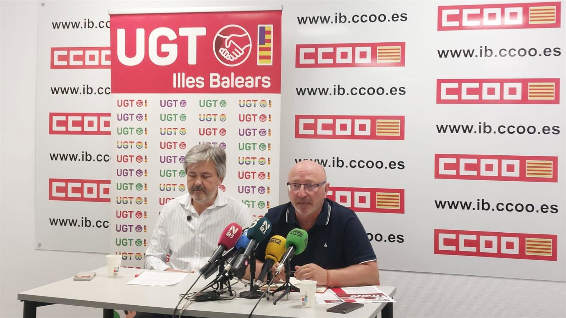 Los secretarios generales de CCOO en Baleares, José Luis García, y UGT Baleares, Pedro Homar, han presentado las manifestaciones que recorrerán las calles del archipiélago por el Día del Trabajador, en el que las principales reivindicaciones pasarán por la «vivienda, salarios y democracia».