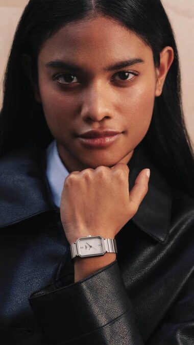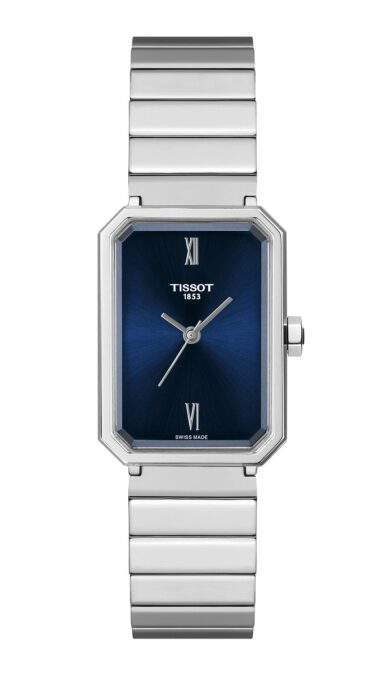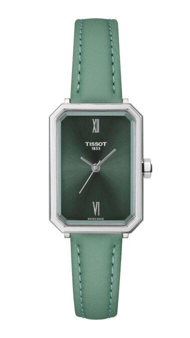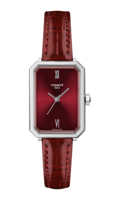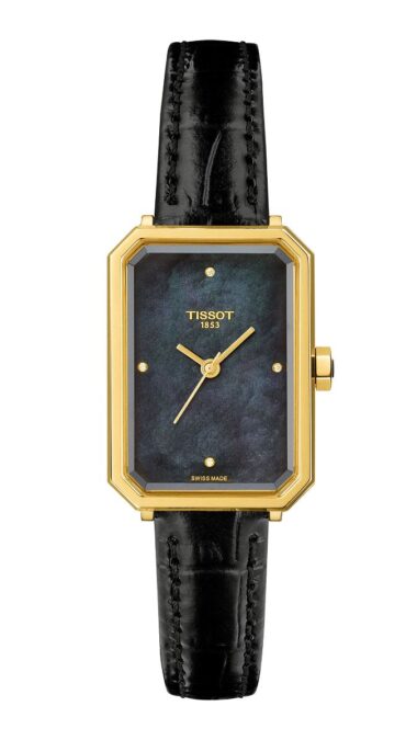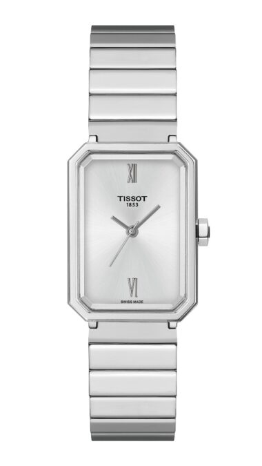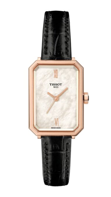 De nombre SRV, este encantador modelo desarrollado en las montañas suizas de Le Locle, donde Tissot fabrica instrumentos para la mujer desde 1853, presenta un perfil similar a una gema tallada rectangular. Es una forma que no suele prodigarse en la relojería y que está reservada para piezas con personalidad. Sus líneas angulosas nos trasladan a la época dorada del art déco, los locos años 20 del pasado siglo, cuando comenzaban a irrumpir en el mercado los relojes de pulsera para ellas, que Tissot había empezado a comercializar en 1907, aproximadamente.
