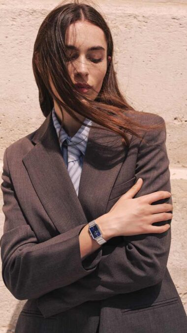 Los SRV son pequeños y asequibles. Miden 30 x 21,8 mm y 7,25 mm de grosor, por lo que se adscriben a la elegante tendencia «mini» que impera en la alta relojería, y su precio oscila entre 375 y 495 euros. Funcionan con un movimiento de cuarzo fiable y preciso y aportan un indicador de fin de vida útil que avisa silenciosamente cuando la pila se está agotando. Apenas pesan, pero no es fácil olvidarse de que se llevan puestos, porque brillan con luz propia. Ese resplandor surge de la sencilla y equilibrada esfera, dotada de un acabado de rayos de sol que aportan reflejos. Porque su objetivo no solo es capturar el espíritu de las mujeres autónomas modernas sino contribuir a que deslumbren.