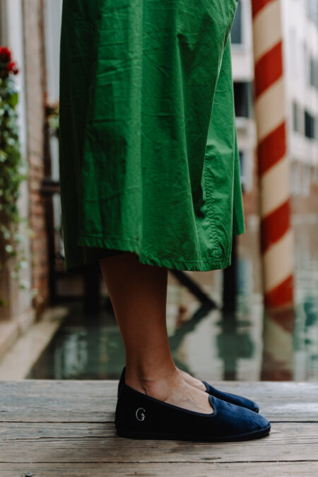 Cada par de Gondolina se fabrica íntegramente en Friuli, Italia, por maestros seleccionados artesanos que trabajan con materiales de excelencia: terciopelos del Lago di Como, sedas y tejidos tradicionales reinterpretados con una mirada contemporánea. El resultado son piezas únicas que combinan patrimonio, diseño y tecnología, reflejando la esencia más pura del Made in Italy.