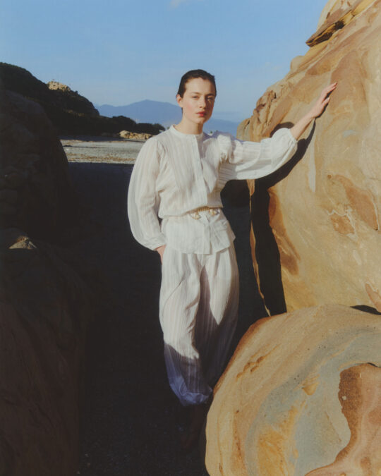En ese diálogo entre pensamiento y estética aparece una feminidad libre y despreocupada, una elegancia sin rigidez y una belleza que surge de lo cotidiano: la luz de la mañana, el paseo sin prisa, el gesto espontáneo. La ropa deja de ser protagonista para convertirse en aliada.