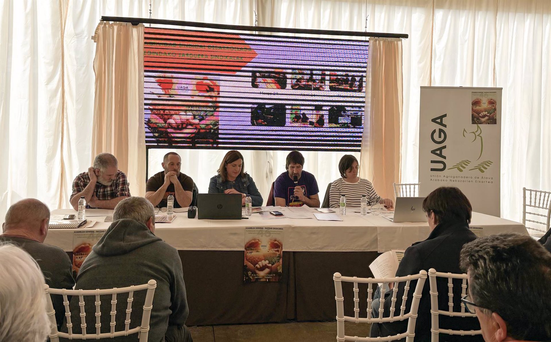 La Unión Agroganadera de Álava-UAGA ha celebrado este miércoles en Ventas de Armentia (Treviño) su 46 Asamblea General con el lema ‘Fortaleciendo el primer sector, sembrando el futuro’ donde han subrayado la necesidad de «seguir reclamando los derechos como productores de alimentos y defender la tierra como medio de trabajo».