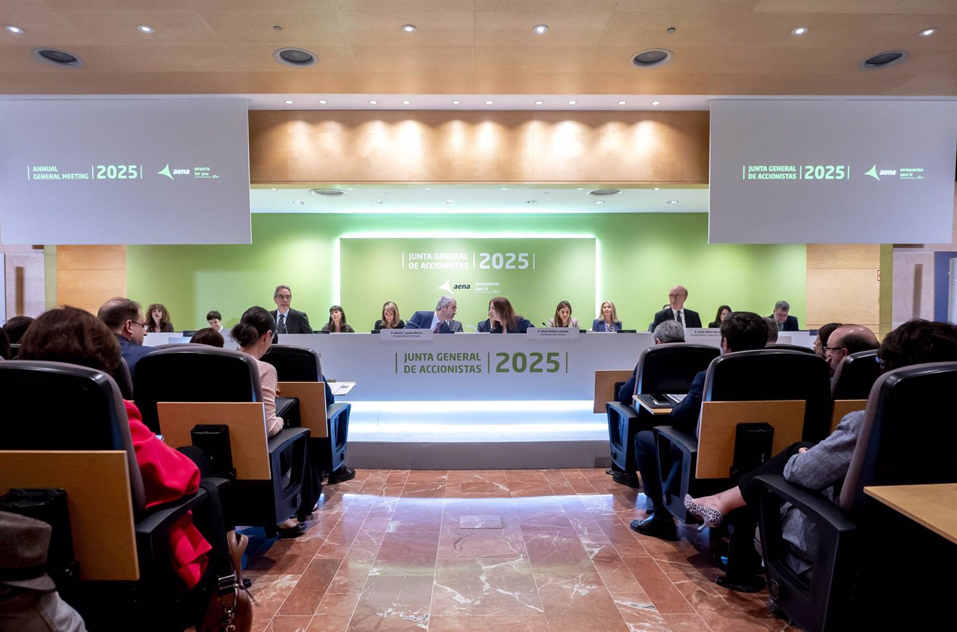 La junta de accionistas de Aena ha aprobado este jueves el reparto de un dividendo de 9,76 euros brutos por título para el próximo 24 de abril, con cargo a los resultados del ejercicio 2024, lo que supone un 27,4% más que el pago del año anterior.