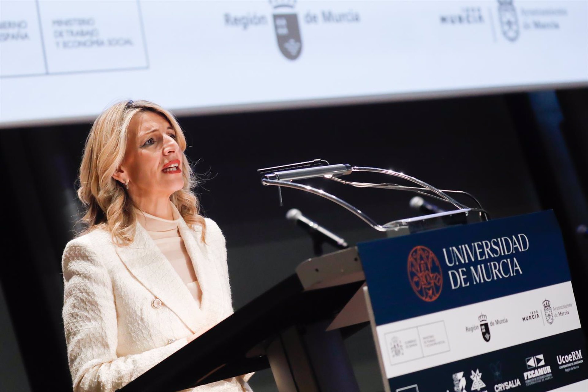 La vicepresidenta segunda y ministra de Trabajo y Economía Social, Yolanda Díaz, clausura este lunes en Murcia el encuentro de mujeres líderes de la Economía Social que se celebra bajo el título ‘Juntas por la Economía Social: Voces del cambio para avanzar en igualdad’, y reúne destacadas profesionales de este modelo económico.