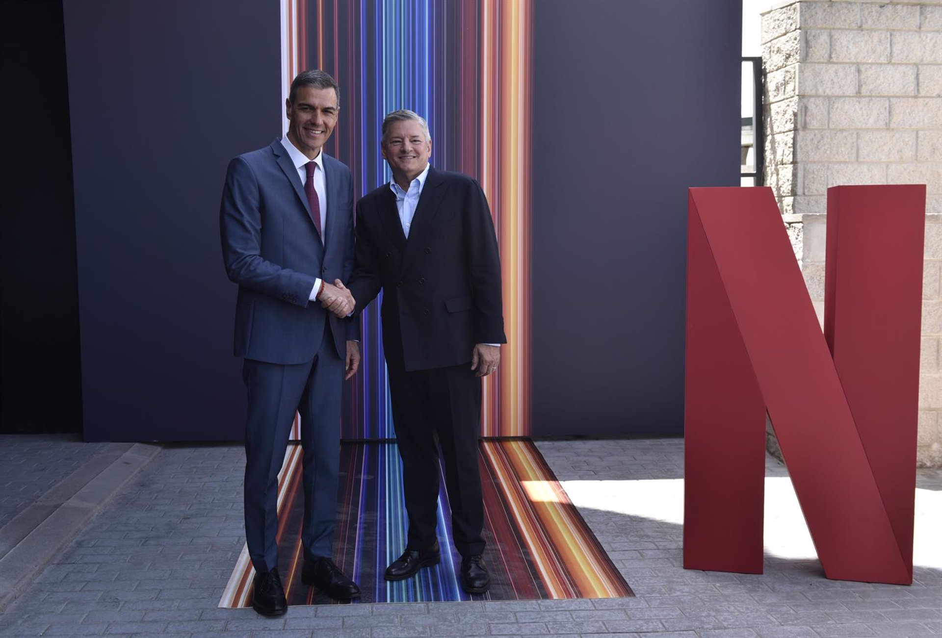«España acoge y agradece vuestra presencia y vuestro firme compromiso con el desarrollo de una industria tan vibrante y tan importante para la economía española como es la industria audiovisual. Un compromiso más patente ahora con la inversión que acabas de anunciar de esos 1.000 millones de euros para los próximos cuatro años, inversión que, desde luego, nosotros agradecemos de corazón», afirmó Sánchez en una comparecencia que tuvo lugar en el Hub audiovisual de 22.000 metros cuadrados que Netflix tiene en Tres Cantos.