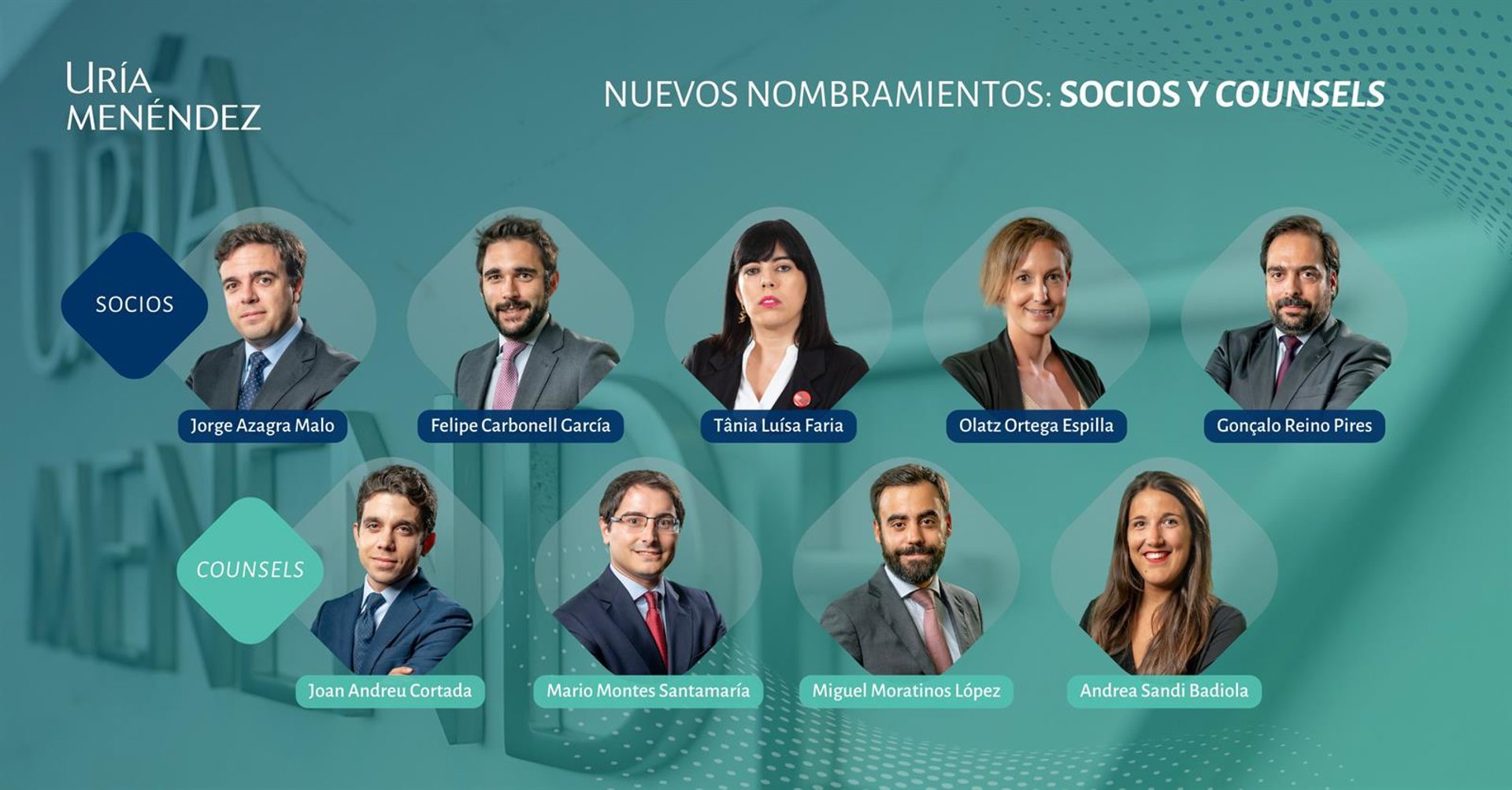 Uría Menéndez ha anunciado este viernes el nombramiento de cinco nuevos socios y cuatro nuevos consejeros con efectos a partir del 1 de enero de 2026 como refuerzo de su «compromiso con el desarrollo del talento interno y con un modelo de carrera sólido, basado en la excelencia, la continuidad generacional y la preservación de sus valores, así como de su rigor y calidad jurídica».