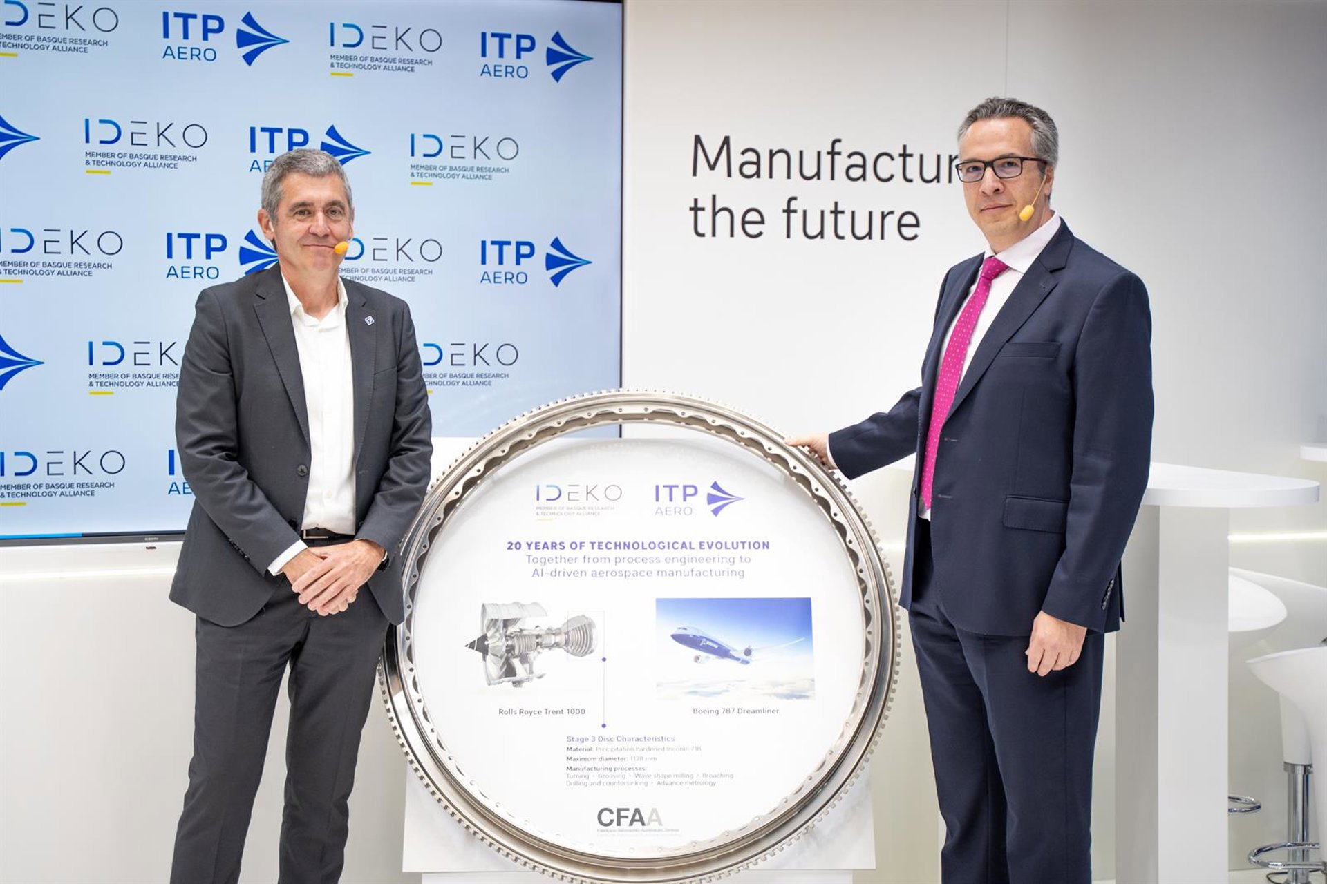 Ideko ha presentado este jueves, en una rueda de prensa en la Bienal Internacional de Máquina-Herramienta (BIEMH), los detalles de esa colaboración con ITP Aero, líder mundial de propulsión aeroespacial, para impulsar la I+D en el sector.