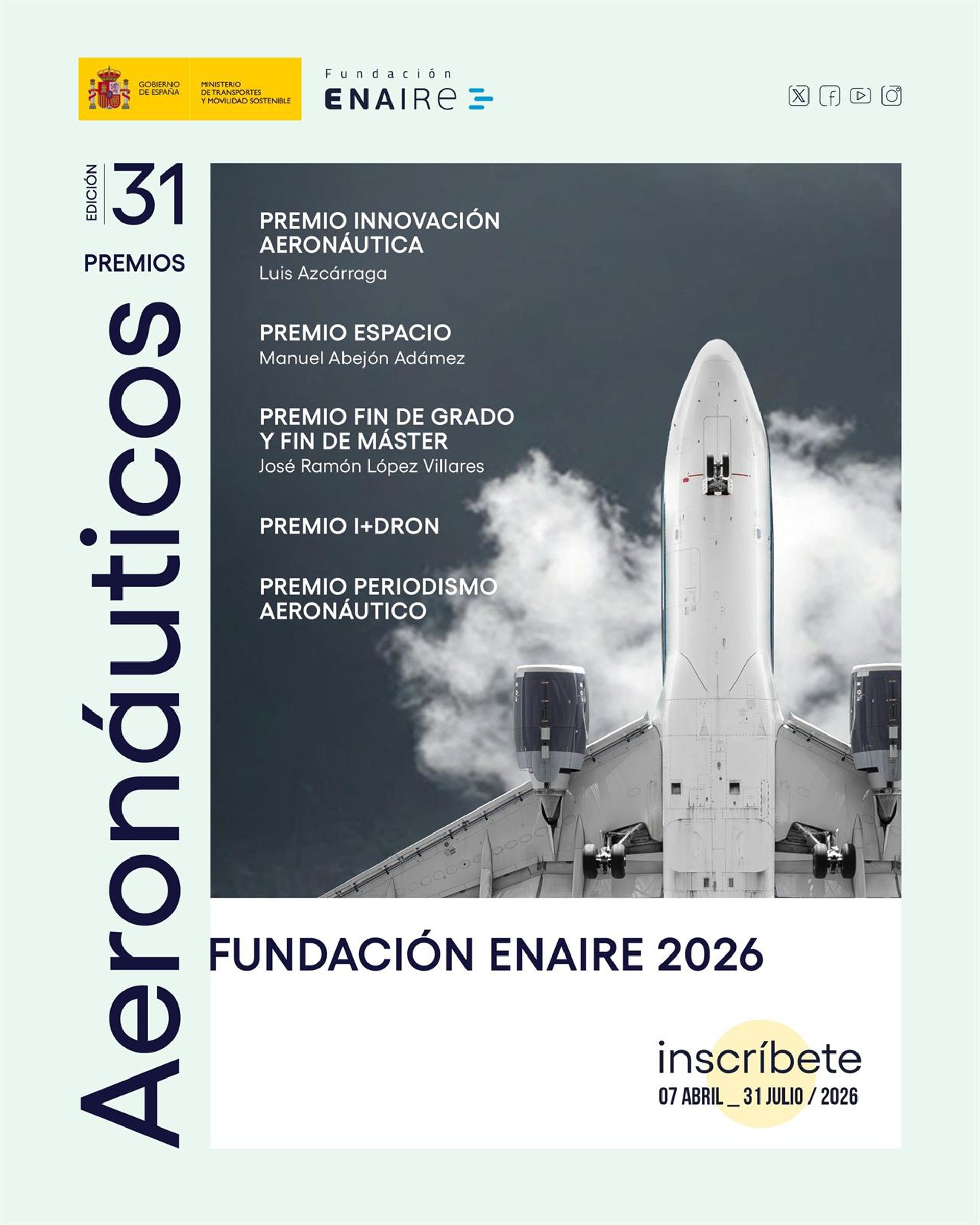 Asimismo, el Premio Innovación Aeronáutica ‘Luis Azcárraga’, también de 10.000 euros, premiará trabajos que aporten contribuciones singulares a la planificación y gestión económica o medioambiental del transporte aéreo publicados durante el año 2025.