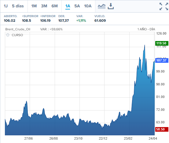 Los precios del petróleo han iniciado la semana con una nueva escalada significativa, impulsados por un escenario de creciente tensión geopolítica y el deterioro de las expectativas en torno a las negociaciones diplomáticas en Oriente Medio. A fecha del lunes 27 de abril de 2026, el mercado energético global vuelve a situarse bajo presión, con el crudo Brent superando los 107 dólares por barril y el West Texas Intermediate (WTI) acercándose a los 96 dólares, en un movimiento que refleja tanto riesgos de suministro como un aumento de la percepción de inestabilidad estructural.