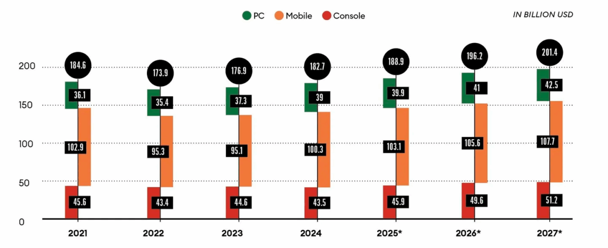 Los juegos móviles lideran el crecimiento en el mercado mundial de juegos, que se mantiene relativamente estable.