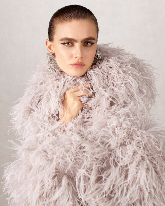 El arte italiano de la elegancia sin esfuerzo, la sprezzatura, informa gestos de naturalidad con mules de piel suave llevados pisados por detrás. Vestirse para el placer se traslada también al menswear, visible en el traje sastre de Direttore y en el look de Principino, definido por su atracción natural hacia el centro de atención. Cada personaje y su vestuario revelan una de las múltiples personalidades de La Famiglia y las actitudes estéticas distintivas que definen la colección.