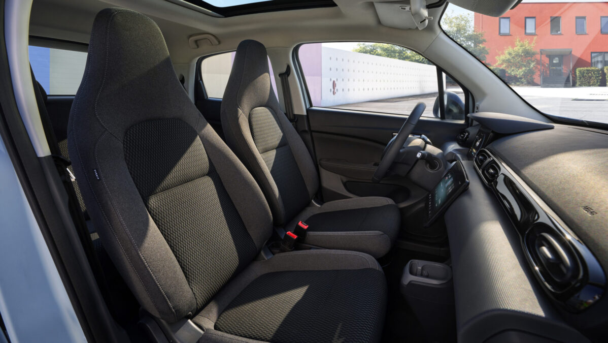 Lo primero que se percibe del T03 son sus reducidas dimensiones. Con 3.620 mm de largo y 1.652 mm de ancho, es uno de los coches más pequeños del mercado, pero, curiosamente, es alto: 1.577 mm. En el interior del T03 hay un espacio sorprendente incluso para los pasajeros de la parte trasera, aunque, lógicamente, el espacio para las piernas sea reducido y el maletero tenga apenas 210 litros de capacidad. Es un coche urbano, pensado para recorridos cortos, así que ¡no pasa nada!: la compra del súper cabe, salvo que se trate de la de una familia numerosa… Y siempre te quedará la opción de abatir los asientos traseros.