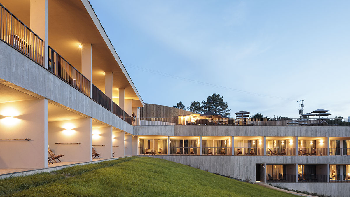 A primera vista, Immerso sorprende por su integración en el valle verde que domina la costa. La arquitectura y el interiorismo buscan evocar el entorno natural, con líneas orgánicas, materiales locales y grandes ventanales que enmarcan el Atlántico. El hotel fue concebido como una extensión de la naturaleza del lugar, un sitio para respirar, detenerse y recuperar el ritmo de la vida lejos de los bullicios urbanos.