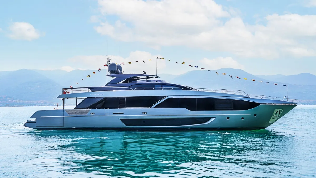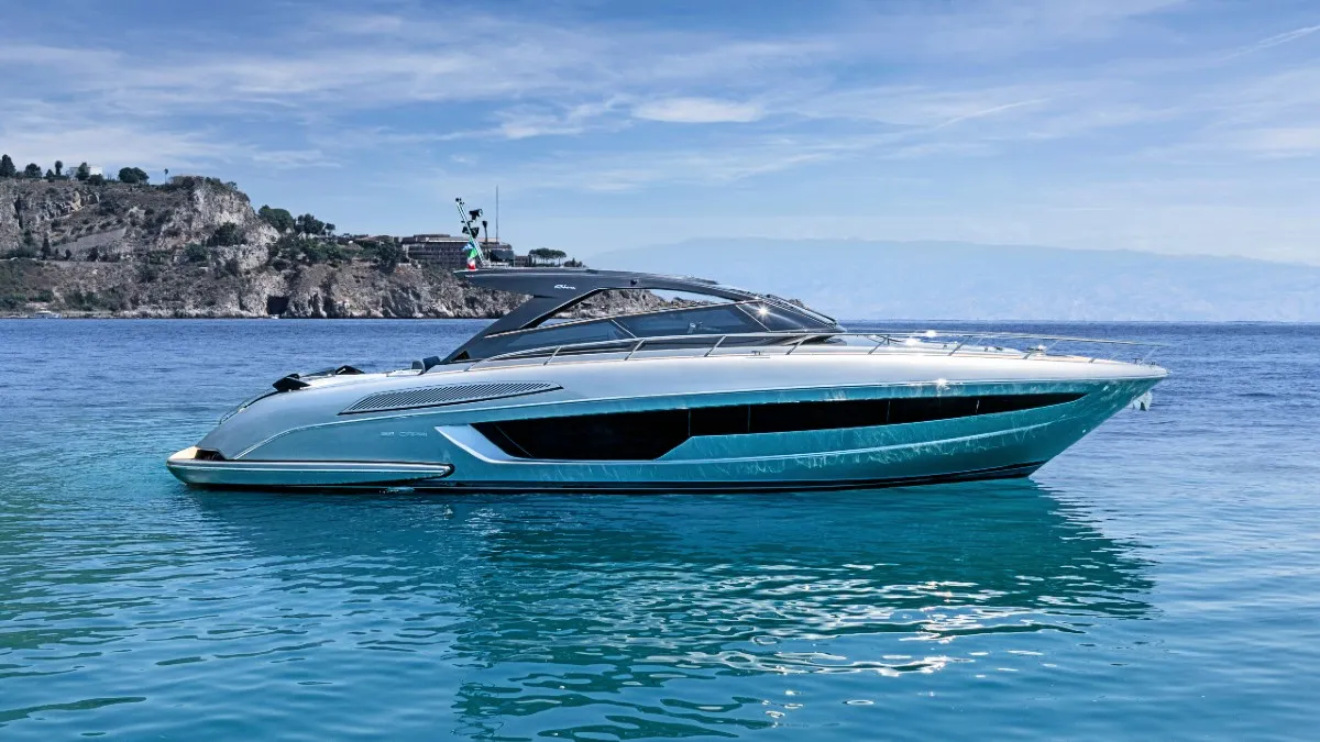 El nuevo buque insignia de Riva ofrece un perfil elegante y distintivo respecto al modelo de 33,5 m presentado en 2018. Los diseñadores han apostado por la redistribución de espacios, con una cabina de popa de 59,0 m² que incluye un club de playa ampliable gracias a terrazas laterales, y un flybridge de 61,3 m² concebido como un auténtico salón al aire libre. Su interior admite dos configuraciones: una más social, con comedor en popa, y otra más tradicional. La suite principal, de manga completa, incorpora vestidores dobles y grandes ventanales. Dos motores MTU 16V 2000 le otorgan una velocidad punta de 25,5 nudos.