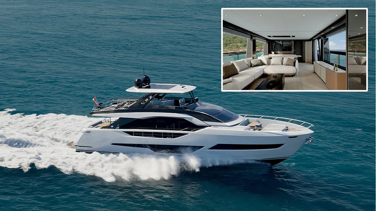 Tras su debut en Venecia, este modelo se mostrará al gran público en Cannes. Es el primer diseño de casco ancho de la línea y comparte el estilo de lujo residencial del 800. Cuenta con cinco cabinas, interiores luminosos con combinaciones de tonos claros y oscuros, y motores MAN de 2000 CV (opcionalmente 2200 CV), que permiten alcanzar entre 25 y 27 nudos.