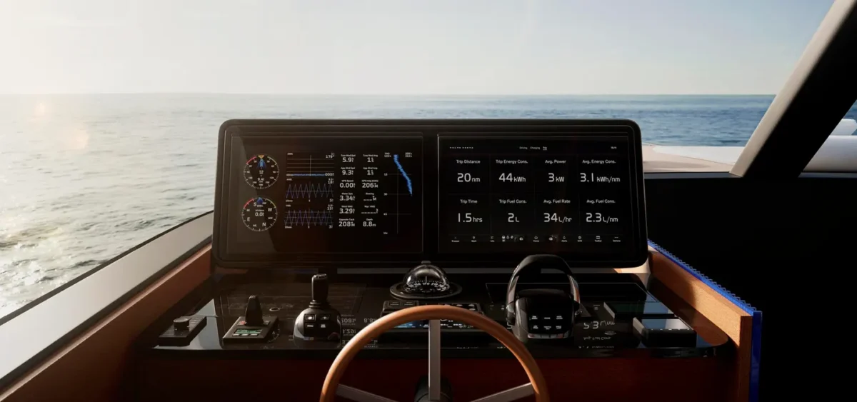 El SHE también marca un nuevo capítulo en la trayectoria de Sanlorenzo hacia la innovación sostenible, convirtiéndose en el primer yate de la flota en integrar el sistema de propulsión híbrido IPS de Volvo Penta: una solución de doble energía que combina la energía eléctrica y diésel. Equipado con dos unidades IPS30 (2 x 1000 CV), el SHE garantiza una velocidad de crucero de hasta 20 nudos en modo híbrido. En modo totalmente eléctrico, el yate puede navegar silenciosamente hasta 9 nudos.