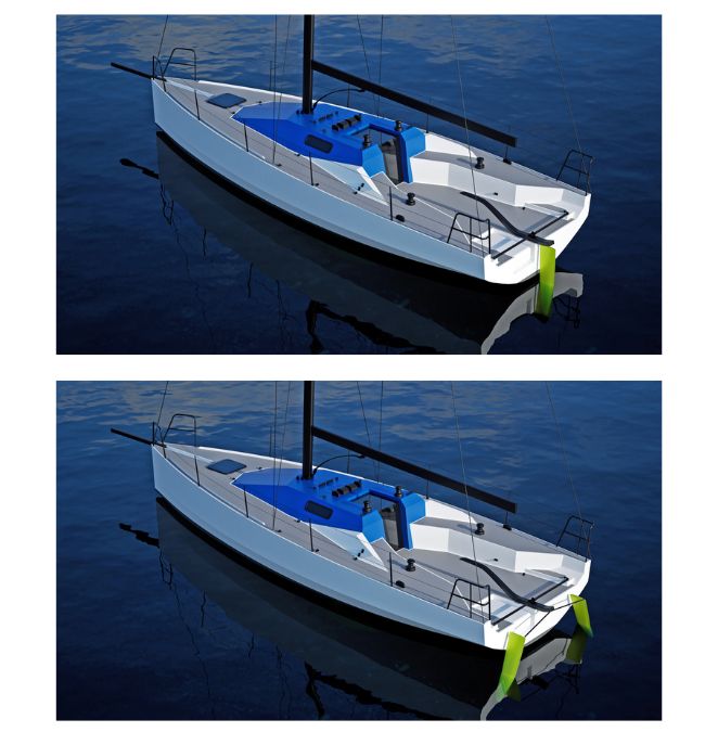 De serie equipa un timón único exterior en composite. Si bien, opcionalmente, puede configurarse con doble timón elevable, una solución cada vez más habitual en regatas de alto nivel.