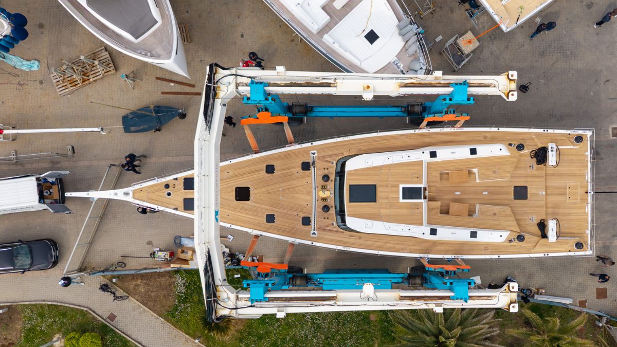 La botadura del primer GS Plus 80 Long Cruise en las instalaciones de Fano marca un momento clave para la marca Grand Soleil. Con la presencia del armador y su familia, el evento simboliza tanto la culminación de un ambicioso desarrollo como el inicio de la fase final antes de su entrega.