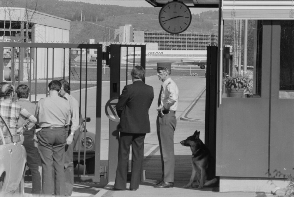 Zúrich, 1977. El Boeing 727-256 de Iberia, aparcado en una zona remota del aeropuerto en espera de la conclusión de su secuestro (Hans Ruedi Bramaz).