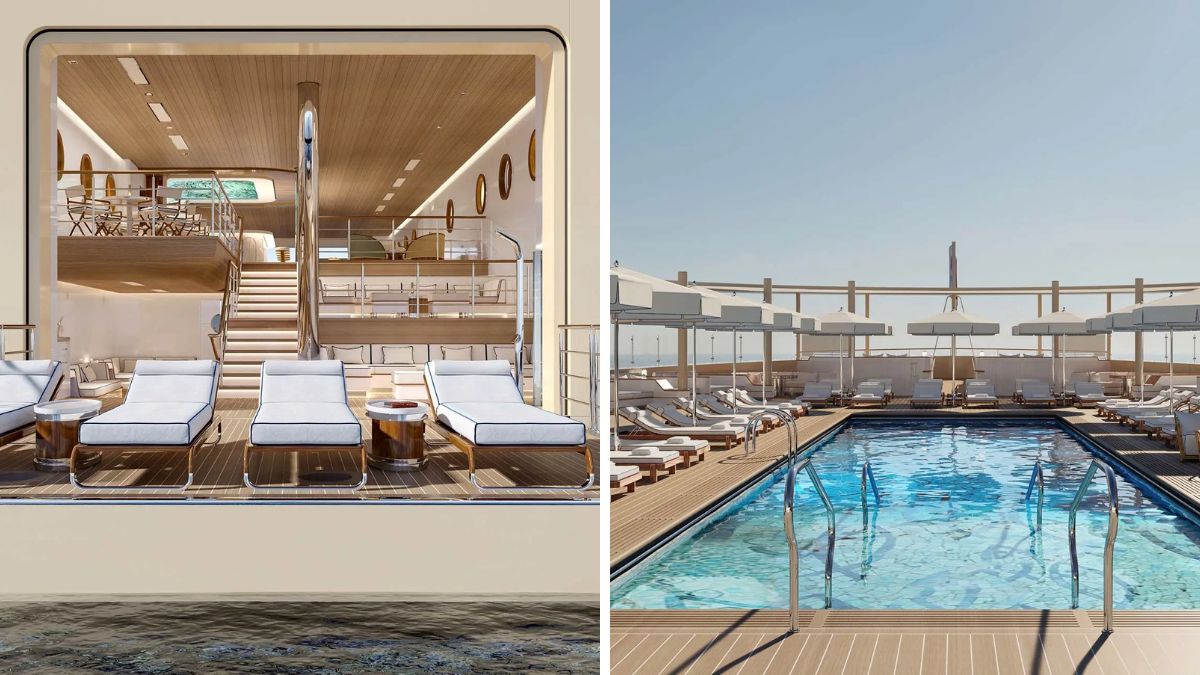 El diseño apuesta por líneas limpias, materiales nobles y una estética contemporánea que busca difuminar la frontera entre yate privado y resort flotante.