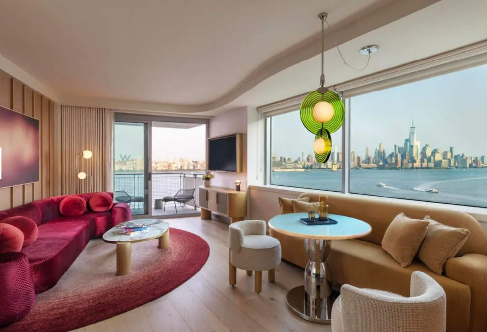 Dónde alojarse: En la orilla de Nueva Jersey del río Hudson, el animado W Hoboken ofrece vistas a Manhattan y fácil acceso al estadio MetLife, que acoge la final de la Copa del Mundo.