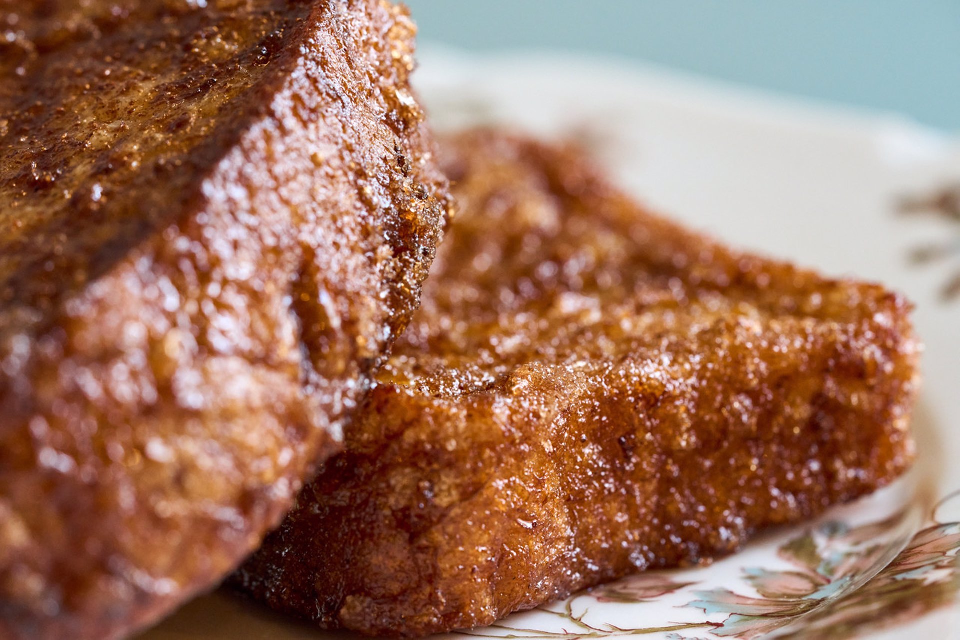 El truco que utilizan para que queden perfectas es empapar bien la torrija para que quede muy jugosa por dentro y hornearla con un toque de miel para que caramelice por fuera.