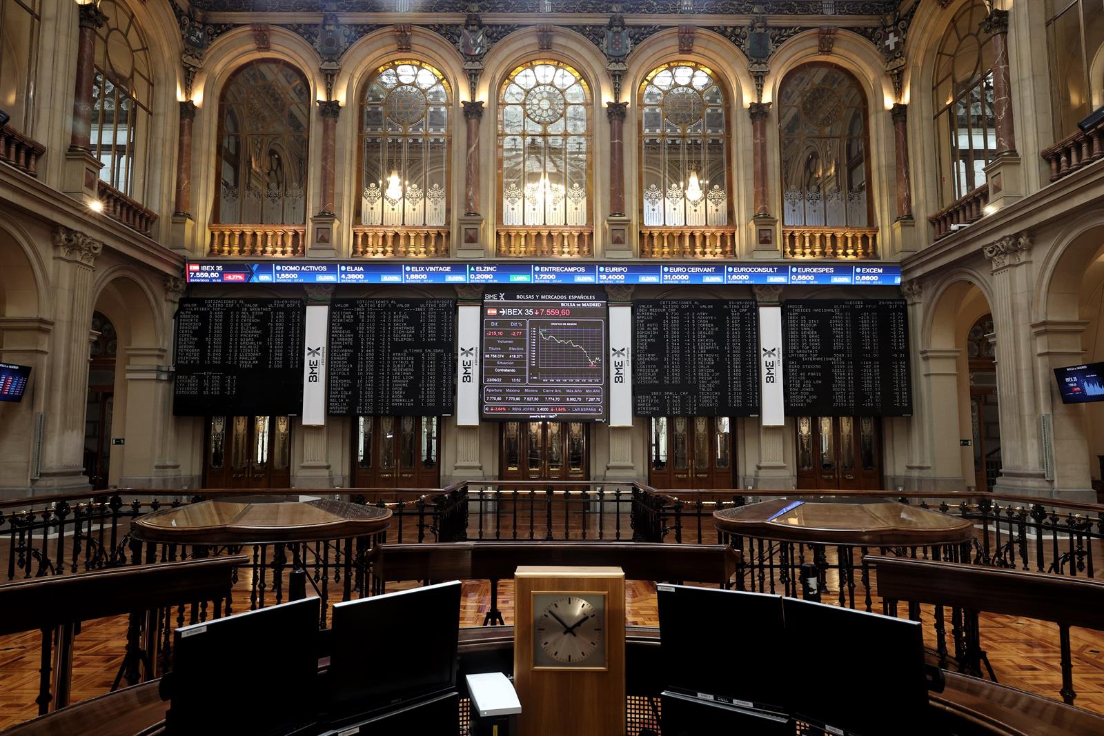 En este escenario, el selectivo español ha terminado la jornada bursátil en los 8.323,2 puntos, con la mayoría de sus valores en negativo. Así, solo han cerrado en ‘verde’ PharmaMar (+0,7%) y Sacyr (+0,46%).