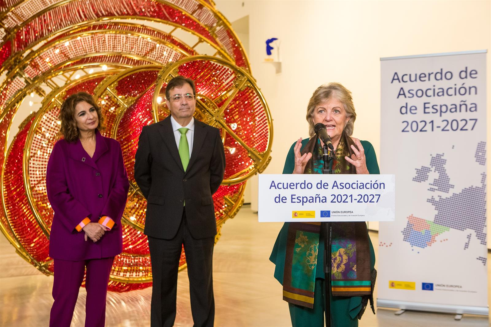 La ministra de Hacienda y Función Pública, María Jesús Montero, y la comisaria de Cohesión y Reformas de la Unión Europea (UE), Elisa Ferreira, han presentado este viernes en Cáceres el Acuerdo de Asociación de España 2021-2027, a través del cual llegarán al país 36.682 millones de fondos europeos estructurales en este período.