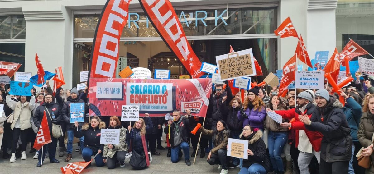 CC.OO ha calificado de «histórica» y de «éxito rotundo» la jornada de concentraciones de los trabajadores de Primark frente a diferentes tiendas de la firma de moda ‘low cost’ en España para reclamar subidas salariales en la negociación del convenio, según informa el sindicato en un comunicado.