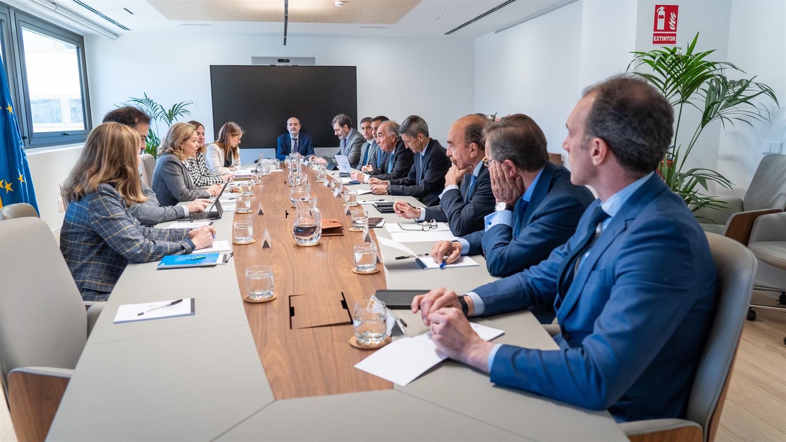La vicepresidenta primera del Gobierno y ministra de Asuntos Económicos y Transformación Digital, Nadia Calviño, ha mantenido este miércoles una reunión con los presidentes y directivos de las fundaciones bancarias, las entidades que desde 2013 recogen la labor social de las antiguas cajas de ahorro y son accionistas de referencia de sus respectivas entidades de crédito.