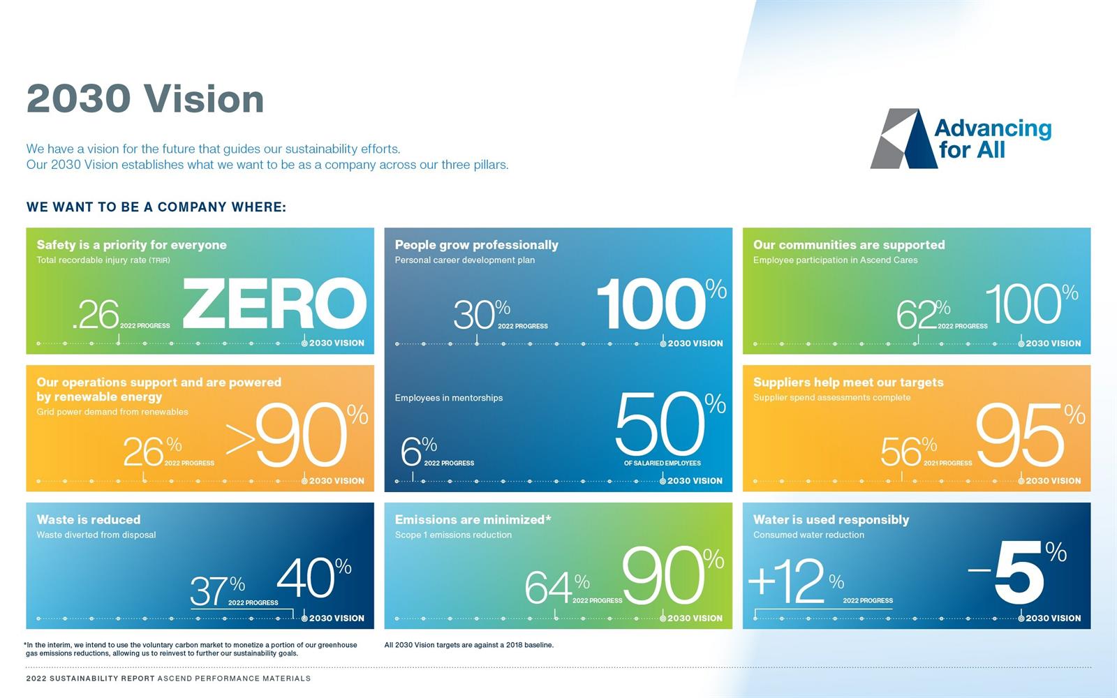 HOUSTON, 21 de junio de 2023 /PRNewswire/ — Ascend Performance Materials ha logrado un progreso significativo con respecto a su Visión 2030, un conjunto de nueve objetivos que abarcan los tres pilares de la estrategia de sostenibilidad de la compañía. La compañía publicó sus avances en su Informe de Sostenibilidad 2022,Advancing for All.