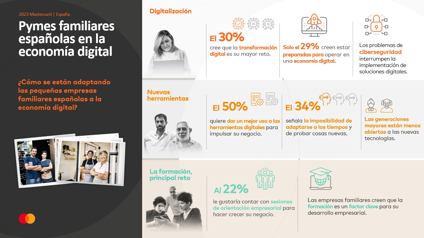 El 50% de las empresas familiares españolas ha destacado que quiere dar un mejor uso a las herramientas digitales para transformar su negocio, pero, apenas el 29% creen estar preparadas para operar en una economía digital, según desprende el estudio ‘Pymes familiares de Europa en la economía digital’ de Mastercard.
