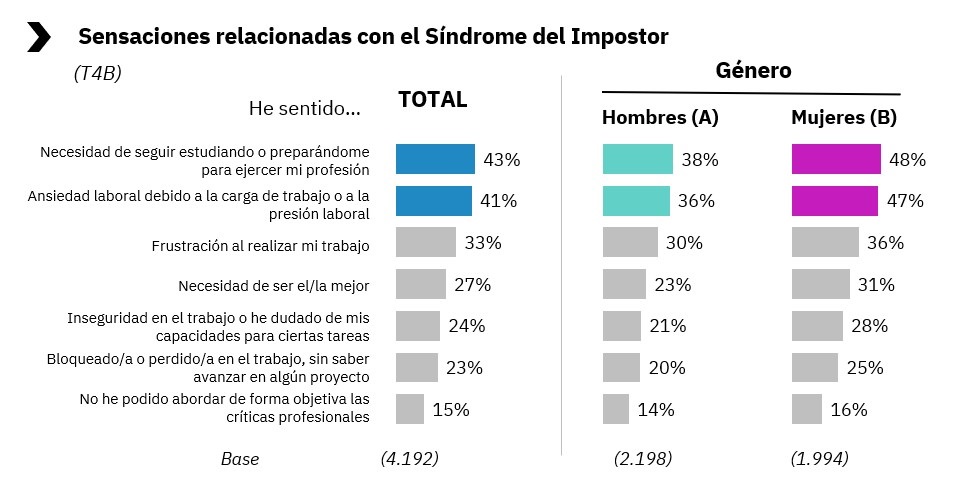 Para llevar a cabo este estudio, se hizo una encuesta online a 4.192 usuarios (2.198 hombres y 1.994 mujeres) durante abril de 2023. En la misma línea, la investigación apunta que el 48% de las profesionales ha sentido alguna vez la necesidad de seguir estudiando o preparándose para ejercer su profesión, situación que desciende al 38% de los varones.