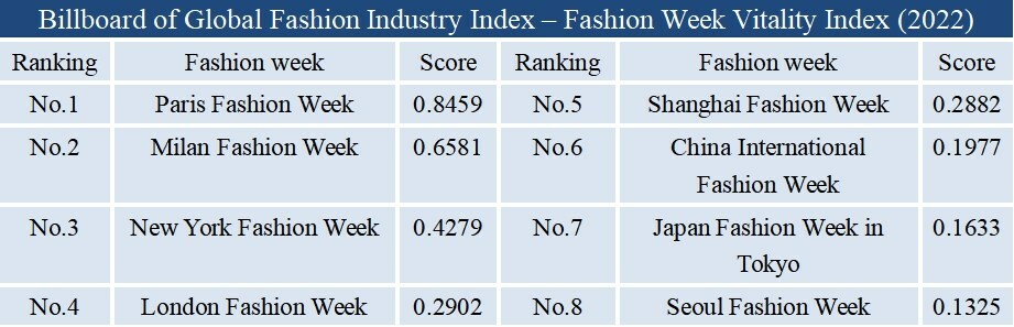 PEKÍN, 11 de octubre, 2023/PRNewswire/ — El Índice Global de la Industria de la Moda – Informe del Índice de Vitalidad de la Semana de la Moda para 2022 se presentó oficialmente en Shanghái el 8 de octubre.