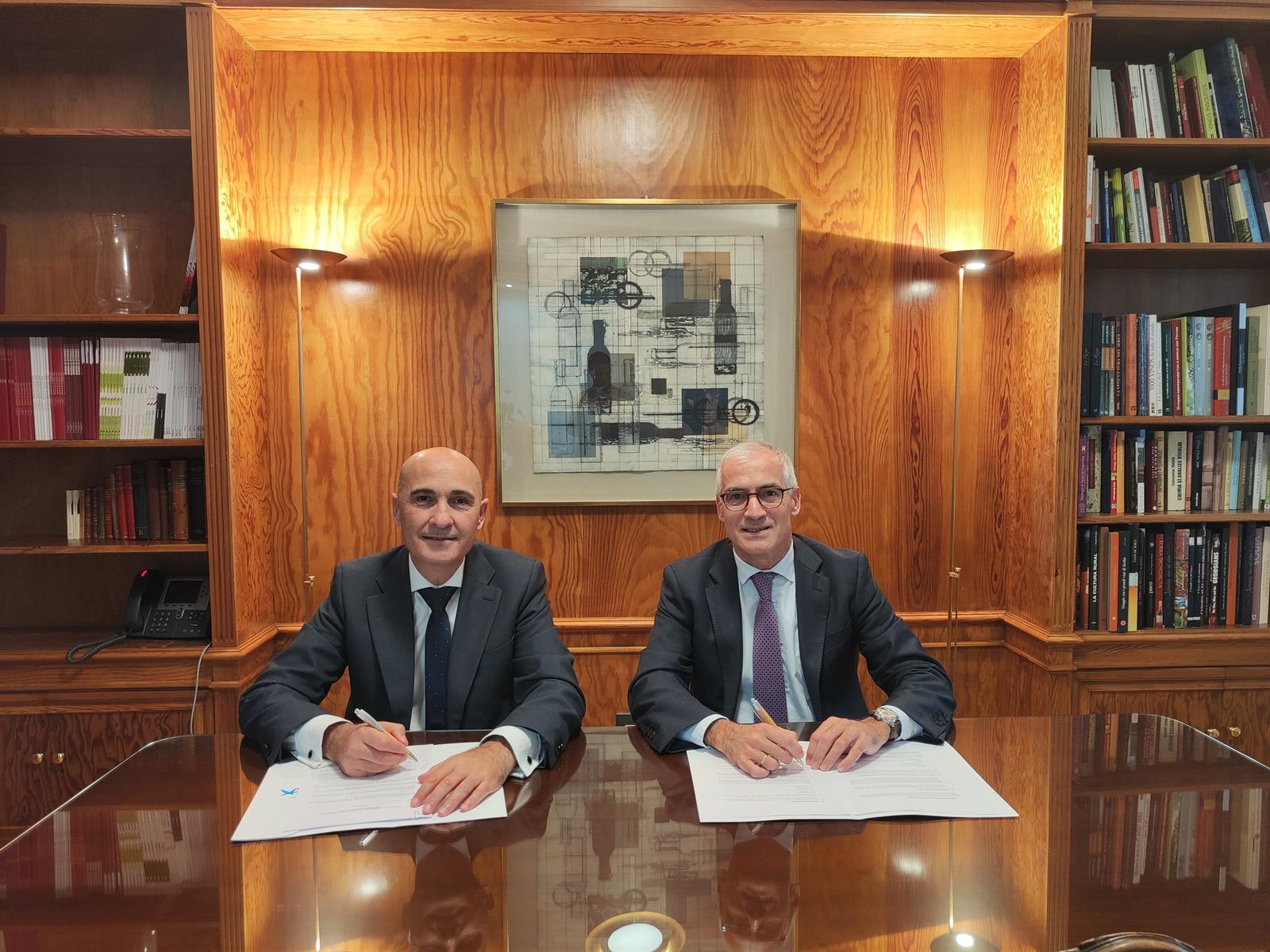 El director de AgroBank, Jaime Campos, y el director general de la FEV, José Luis Benítez, han firmado la renovación del acuerdo que ambas organizaciones mantienen desde hace años y que consolida el apoyo «inequívoco» de la entidad bancaria al sector vitivinícola español, según han detallado ambas compañías en una nota de prensa conjunta.