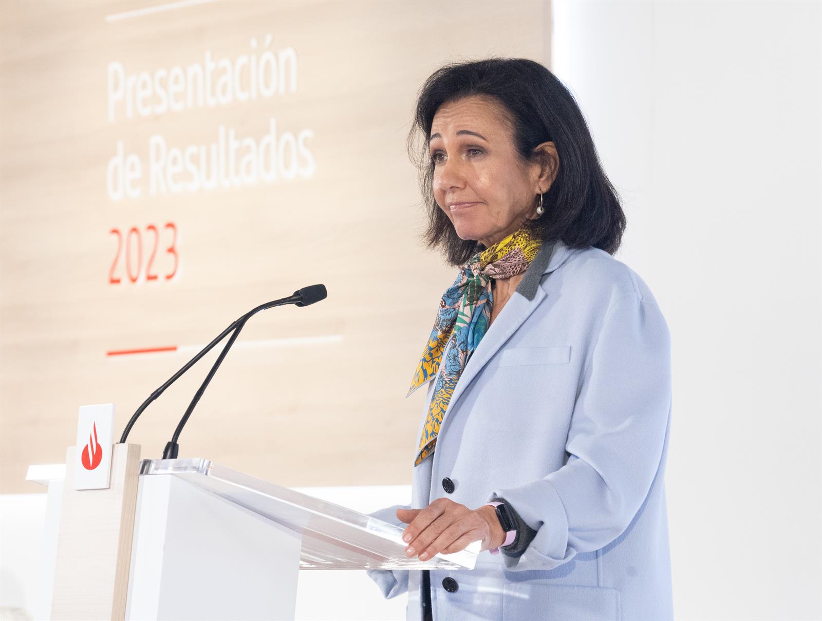 Banco Santander ha estimado que el impacto del impuesto extraordinario a la banca respecto a las cuentas de 2023 (que se pagará en 2024) será de 338,5 millones euros, según ha indicado en rueda de prensa este miércoles la presidenta ejecutiva del grupo, Ana Botín.